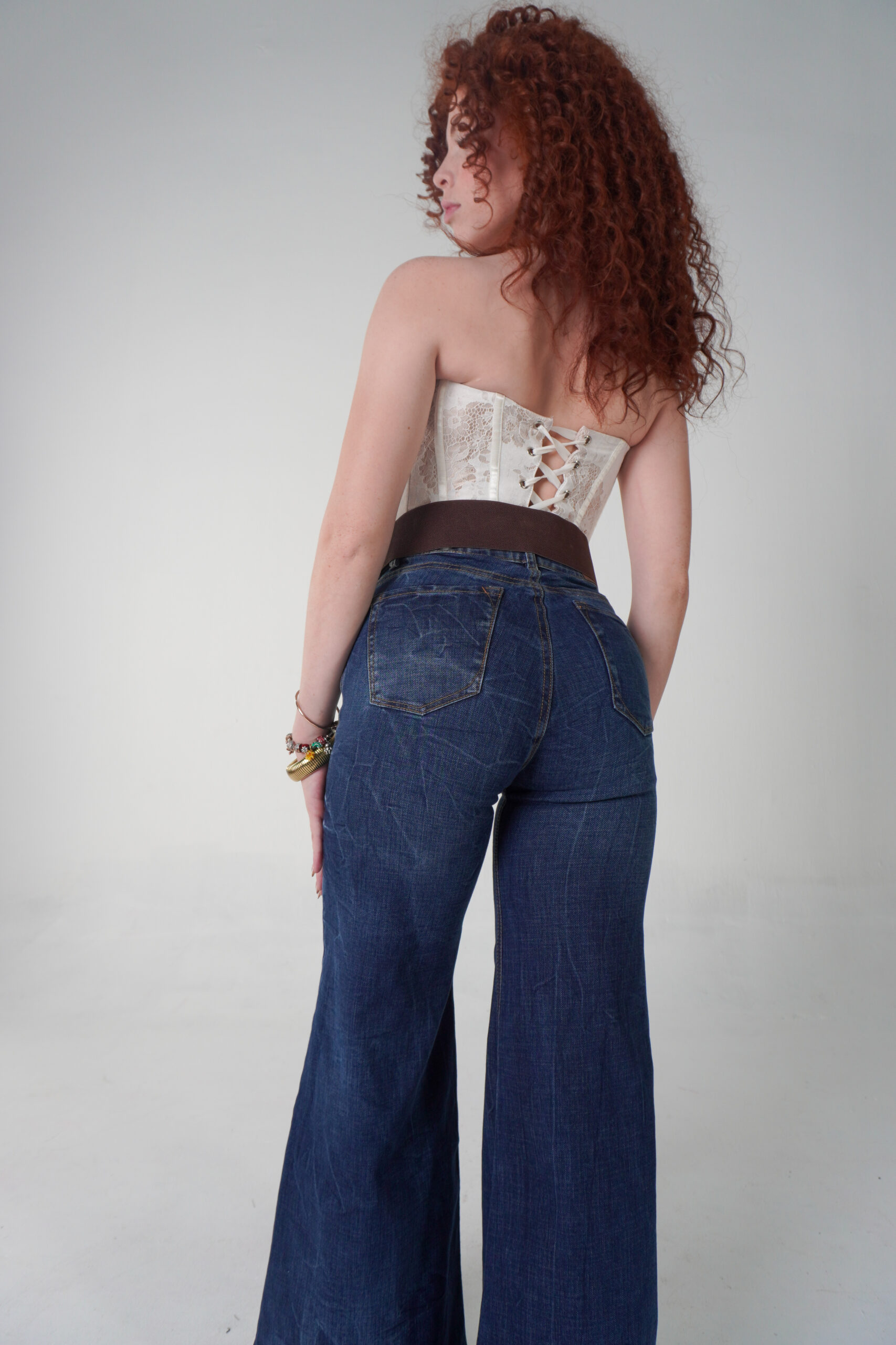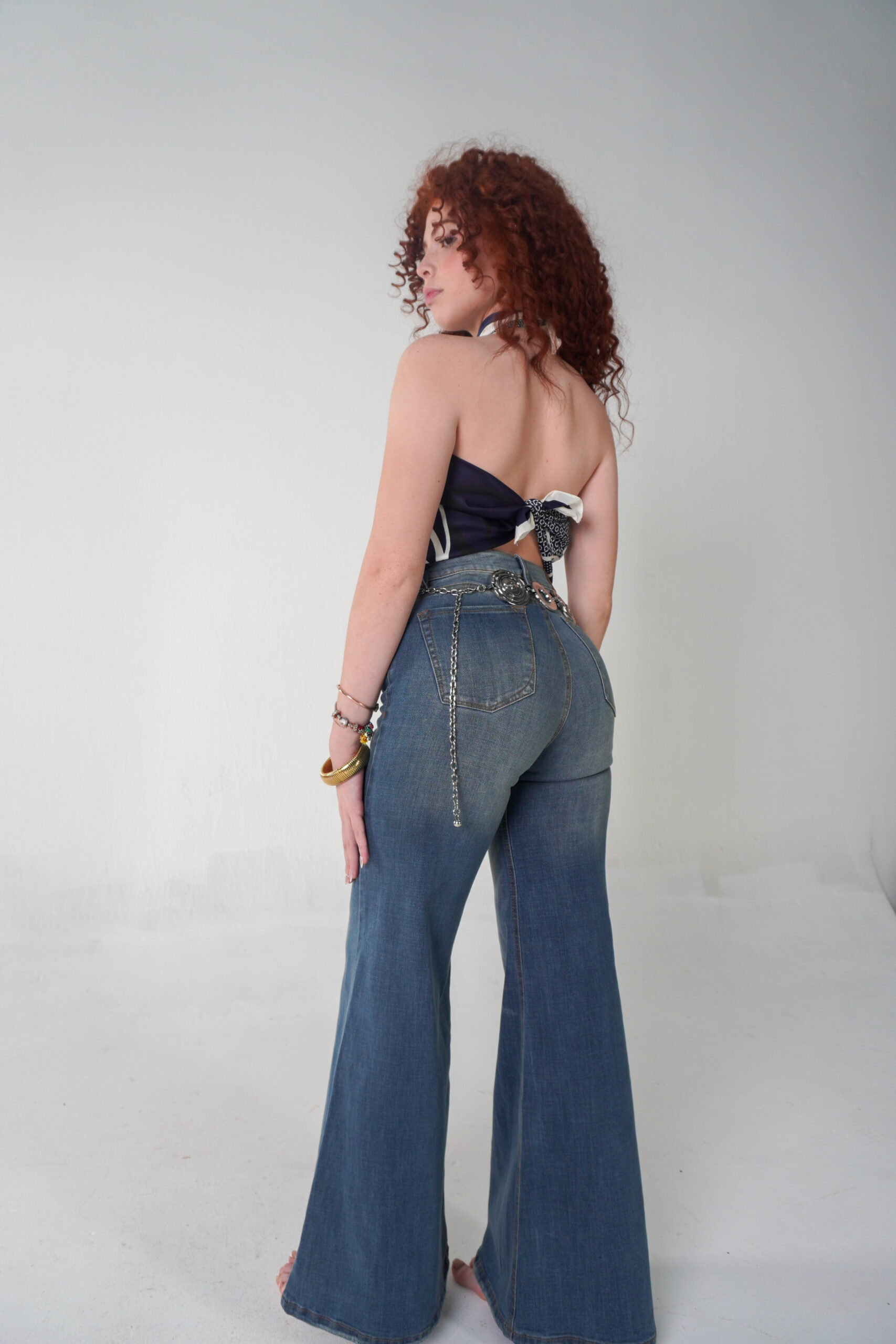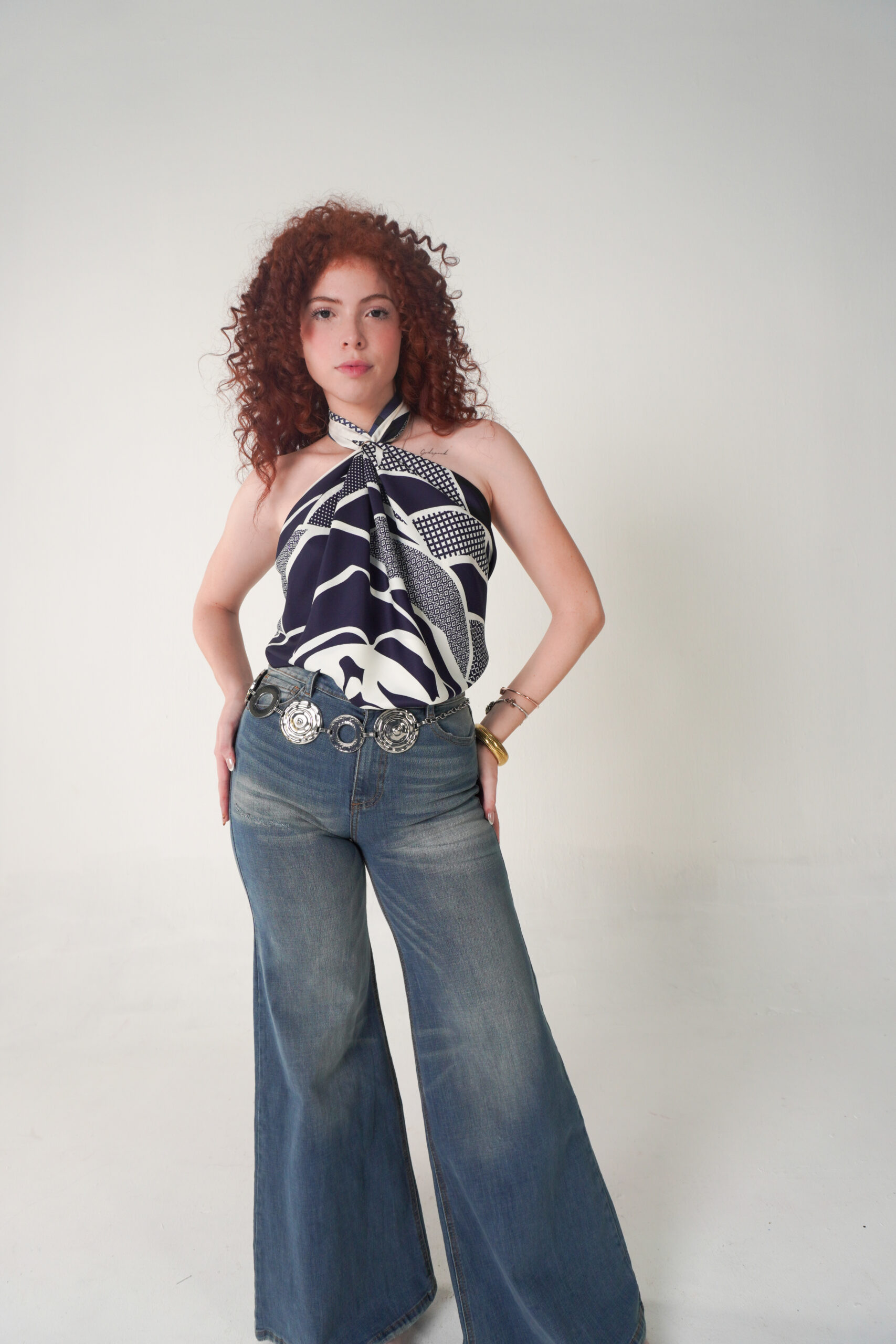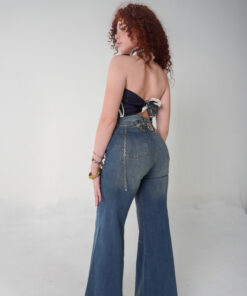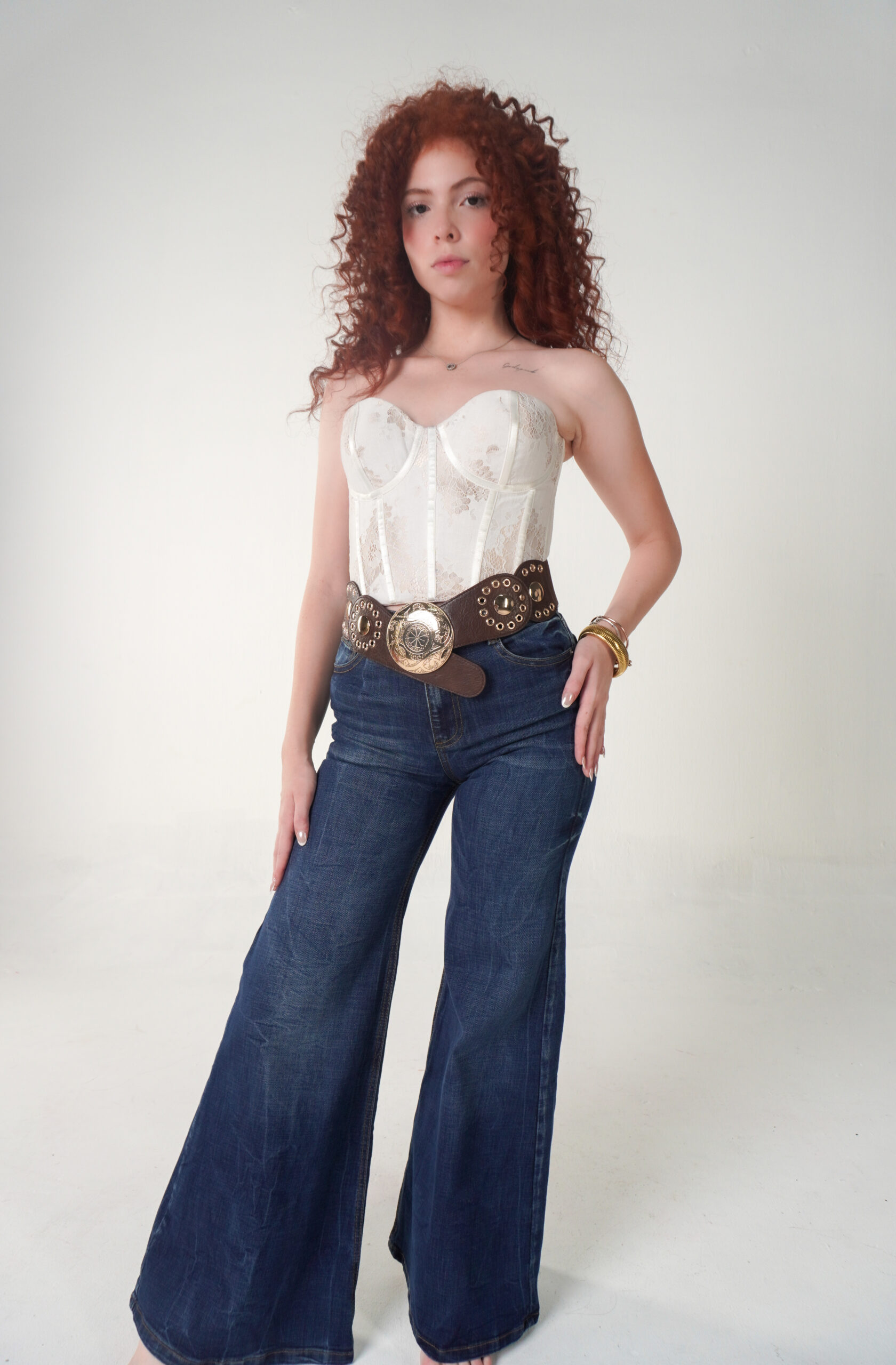 Baggy jeans colombiano de tiro medio y da realce en la pompa