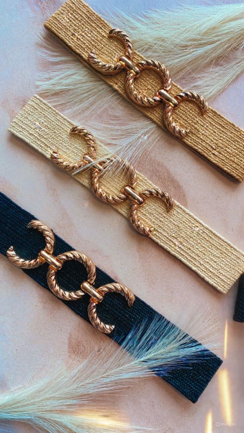 Cinturón de yute con detalle de hebilla dorada