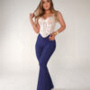 Flare jeans de talle alto da realce en la pompa y es stretch