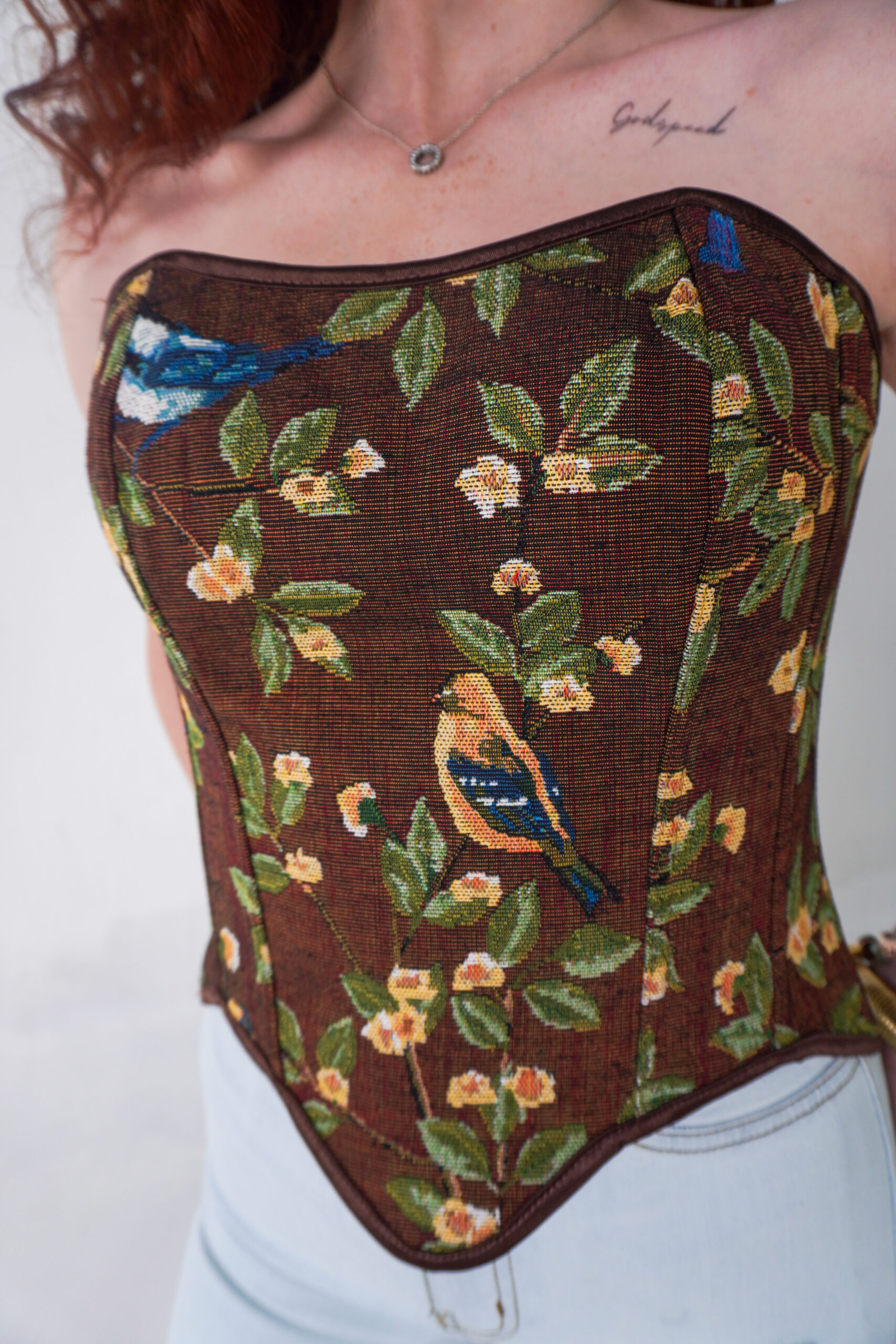 Top corset con estampado floral con cierre de ganchos en la parte posterior para mayor ajuste