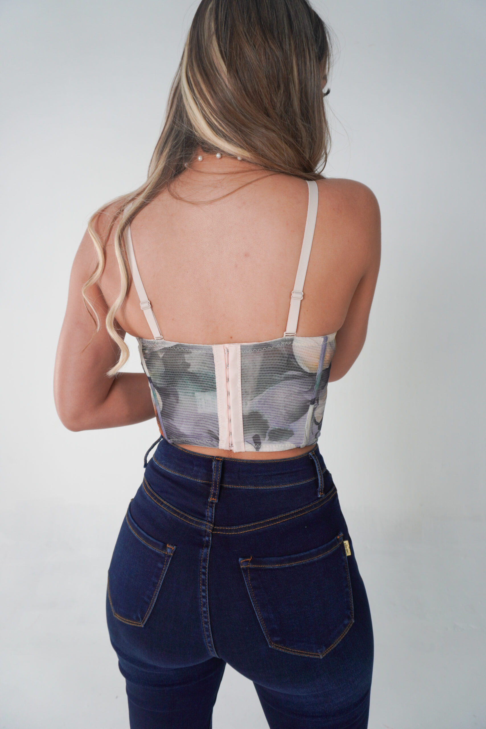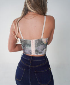 Top corset multicolor verde con cierre de ganchos en la parte posterior para mayor ajuste