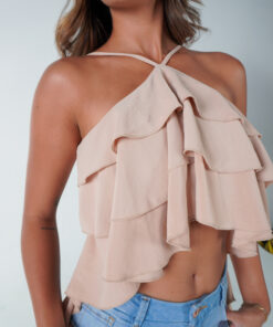 Top halter colombiano de escote cuadrado con detalle de zipper en la parte de atrás